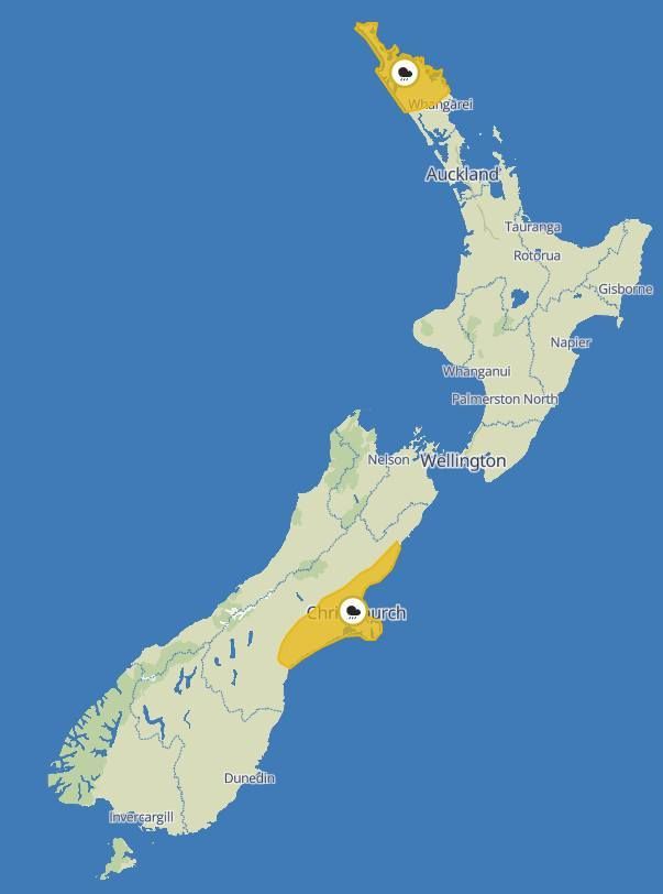 新西兰气象局MetService今天上午对Whangārei以北的地区发布了14小时的强降雨预警,持续时间从上午10点至午夜。