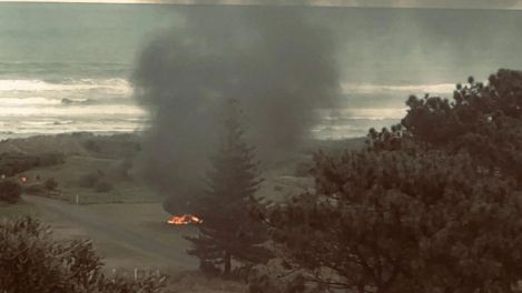 奥克兰Muriwai今早突发汽车起火事件。消防人员在一辆被烧毁的汽车旁发现了一具尸体。