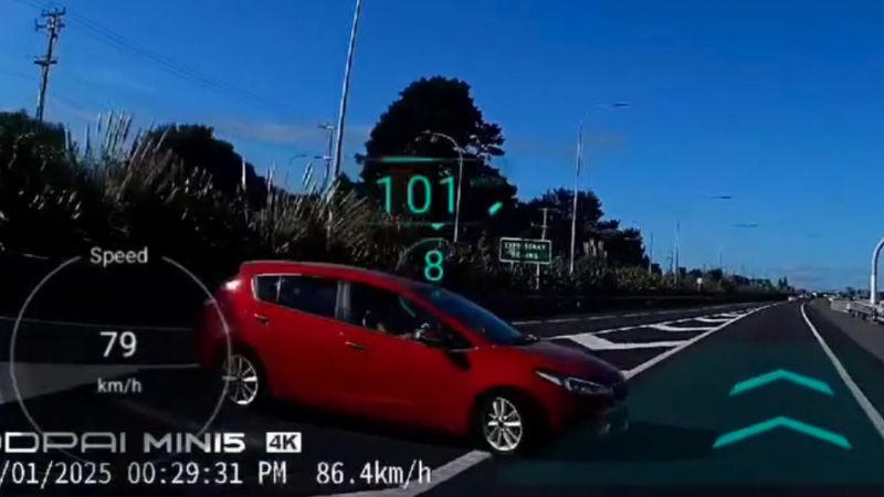 提供行车记录仪视频的司机Brendyn Gray称,自己是猛踩刹车才避免与违章车辆相撞,当时那辆车是在Mount Maunganui的Bayfair购物中心附近错误驶入高速公路的。