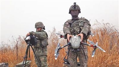 韩军士兵在演习中使用无人侦察机。(图片来源:北京《中国国防报》)
