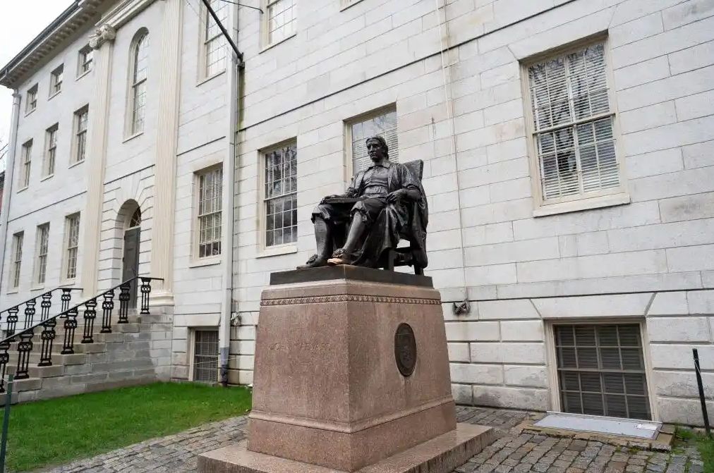 哈佛大学内创始人约翰·哈佛的雕塑。(图片来源:新华社资料图)