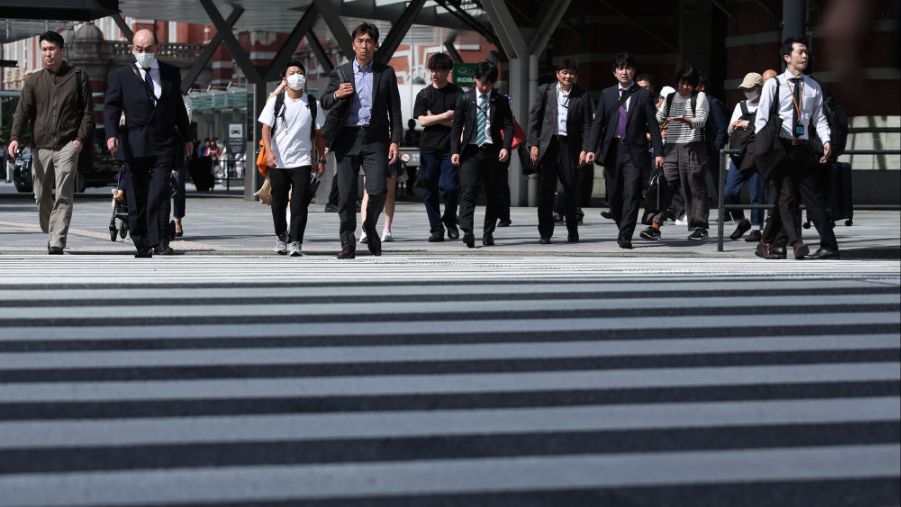 5月15日,行人通过东京站附近的一处人行横道。(图片来源:新华社)