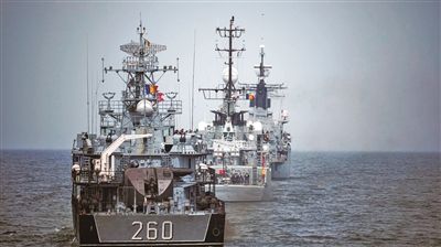 罗马尼亚海军在黑海组织演习。(图片来源:北京《中国国防报》)