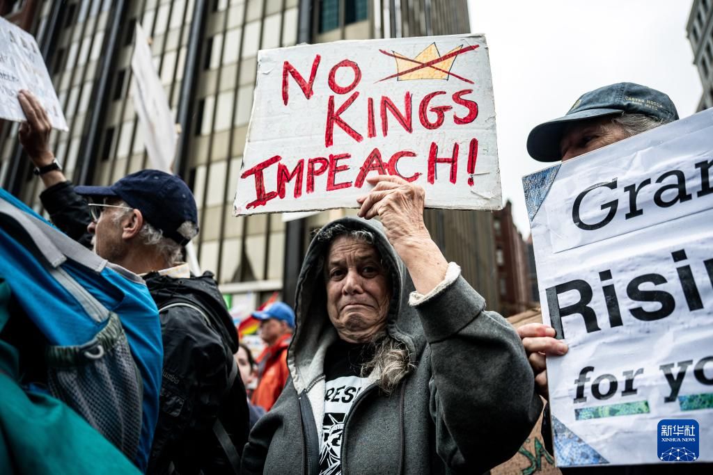 同一天,全美多地爆发反对特朗普政府移民、卫生、教育等方面政策的约2000场示威游行活动,活动名为“不要国王”。在纽约、洛杉矶、休斯敦等地,人们走上街头,高喊“没有法治就没有和平”“关闭移民与海关执法局(ICE)”等口号。