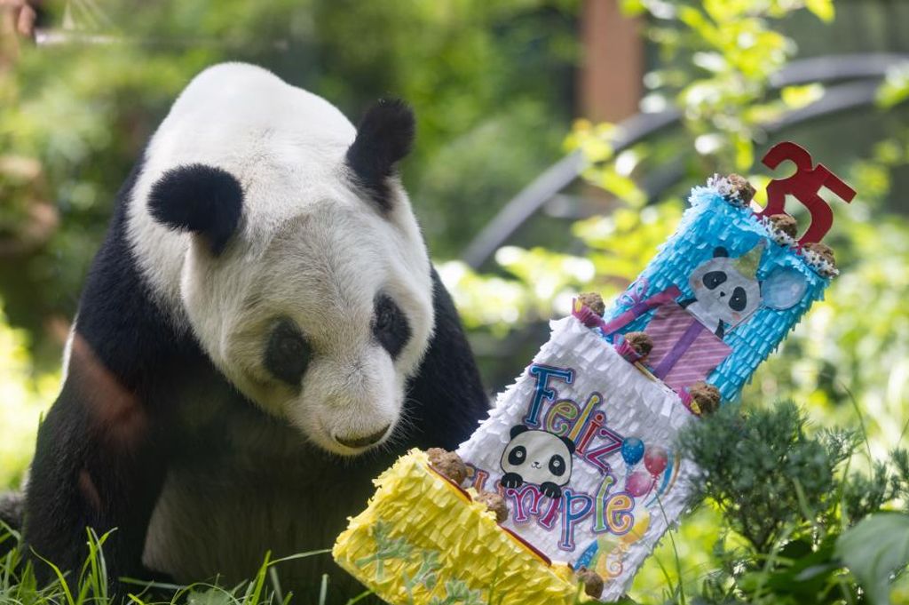 雌性大熊猫“欣欣”是中国政府赠予墨西哥的两只大熊猫“迎迎”和“贝贝”的后代,是拉丁美洲目前唯一的大熊猫,也是海外现存最长寿的大熊猫。据了解,35岁的熊猫年龄相当于人类的110岁左右。图为大熊猫“欣欣”举办35岁生日庆祝派对。(图片来源:大陆央视新闻客户端)