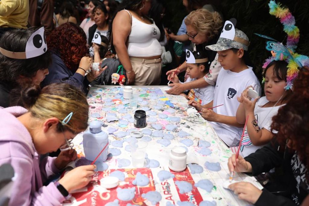 在墨西哥首都墨西哥城查普特佩克动物园,游客给纪念品涂色。(图片来源:新华社)