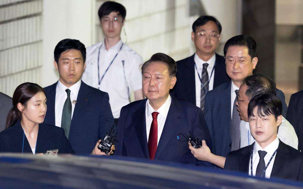7月9日,尹锡悦接受讯问后走出首尔中央地方法院。(图片来源:新华社)