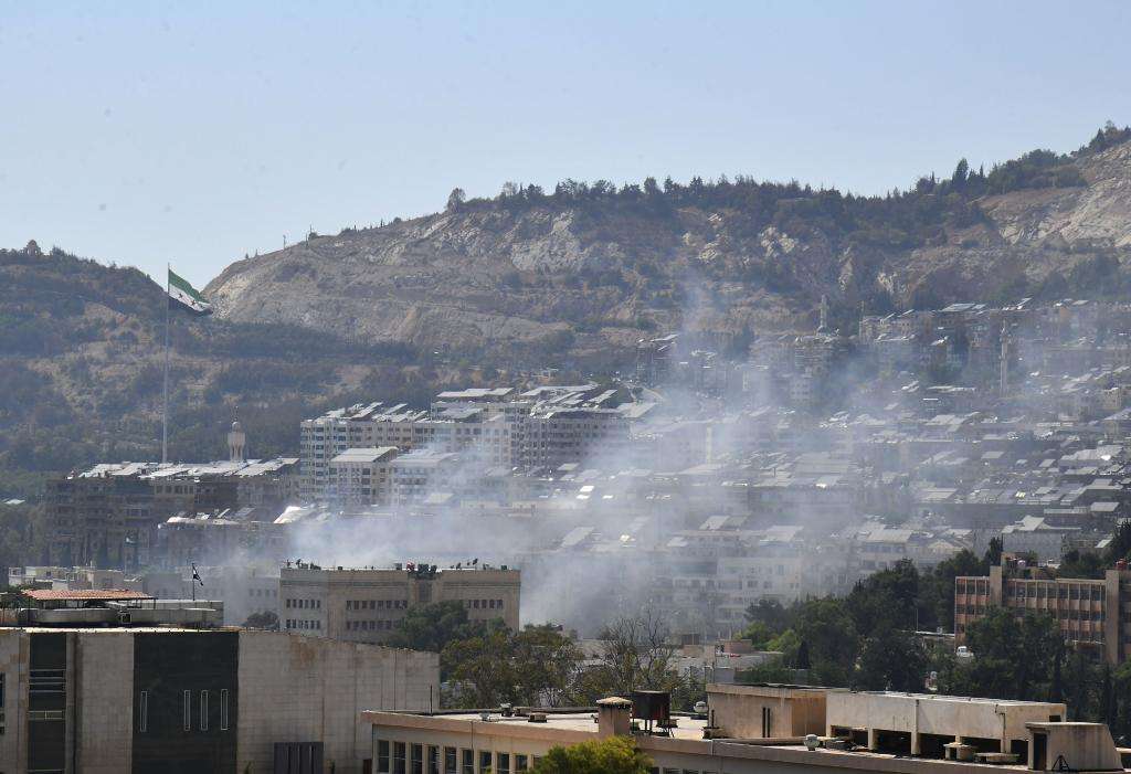 7月16日,叙利亚大马士革,以军袭击后升起的烟雾。(图片来源:新华社)