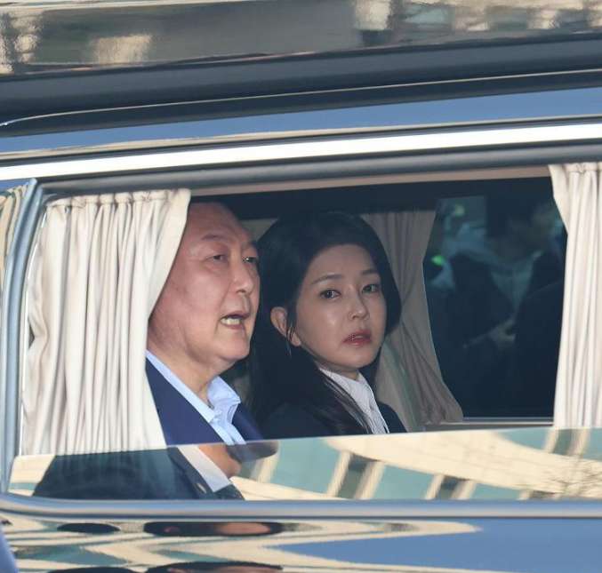 尹锡悦与其夫人金建希。(图片来源:大陆央视新闻客户端资料图)