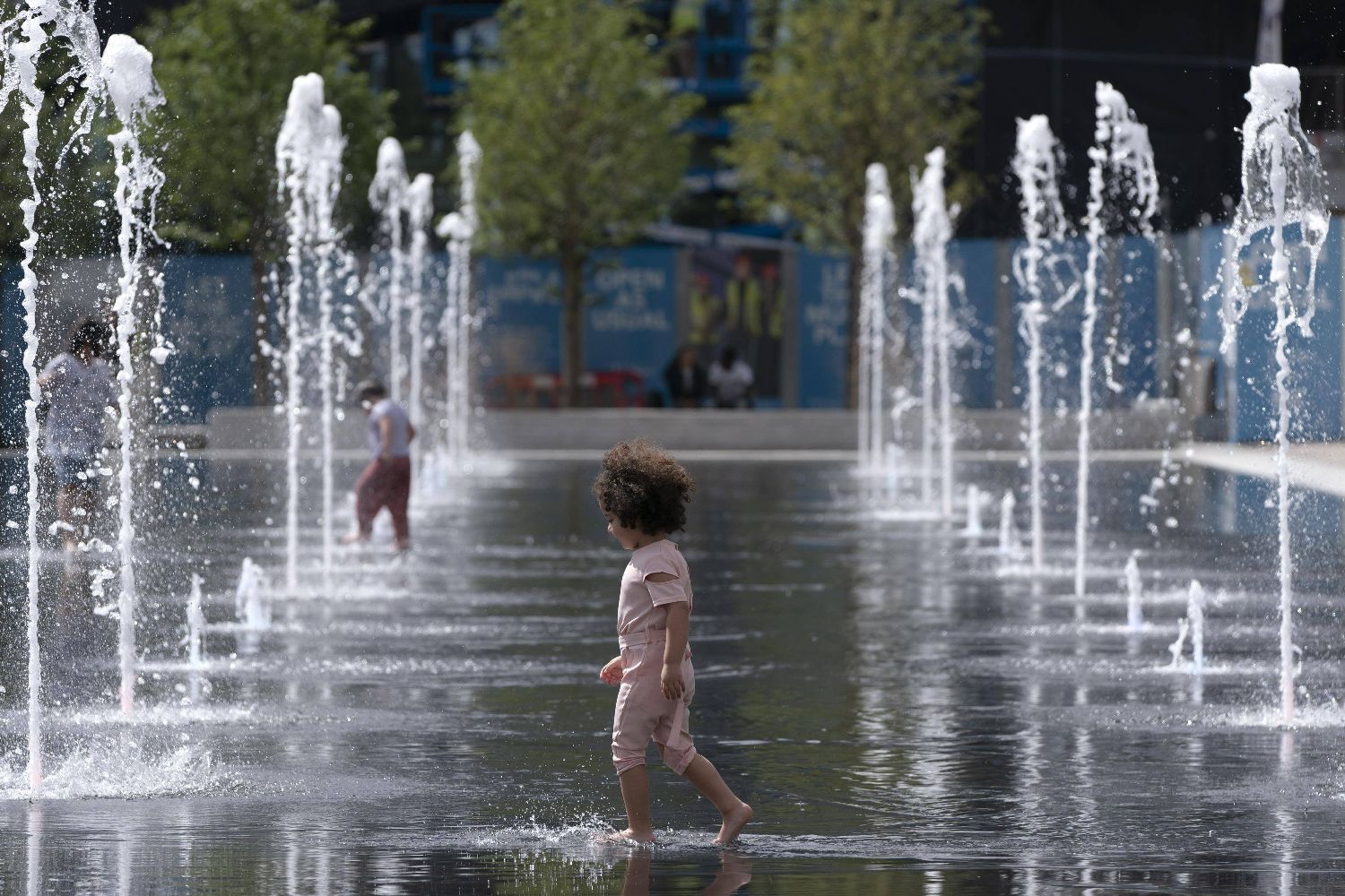 2020年8月24日,儿童在英国伯明翰市中心的一处喷泉玩耍。(图片来源:新华社资料图)
