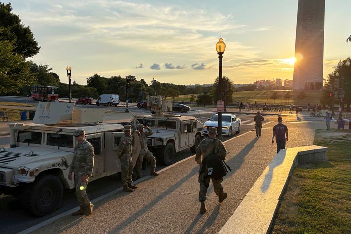 8月12日在华盛顿市区拍摄的国民警卫队人员。(图片来源:新华社)