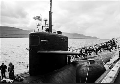 7月,美海军“洛杉矶”级攻击型核潜艇“纽波特纽斯”号靠泊冰岛港口。(图片来源:北京《解放军报》)