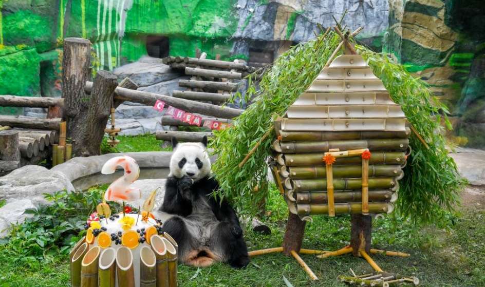大陆央视新闻客户端报道,在莫斯科动物园,“喀秋莎”收到了一个由竹材与树叶搭建的小屋,还有一个用竹子、水果和冰制成的生日蛋糕。
