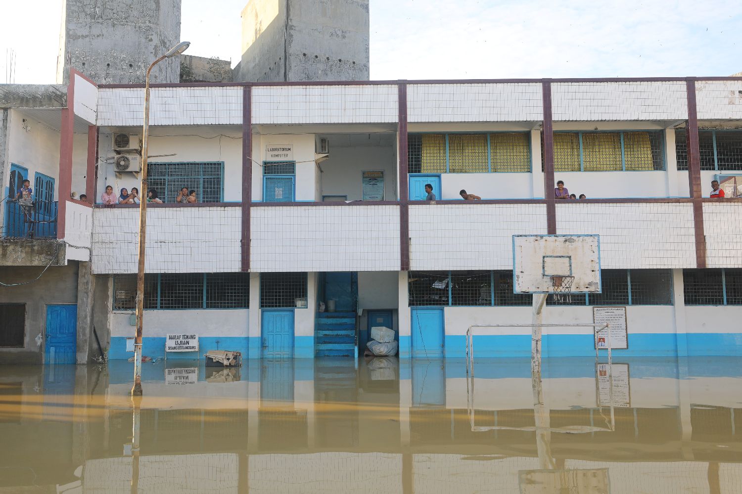 当地时间11月30日,印度尼西亚苏门答腊岛冷吉县丹戎普拉镇的一所被洪水围困的学校,成为受灾民众的临时避难点。(图片来源:中新社)