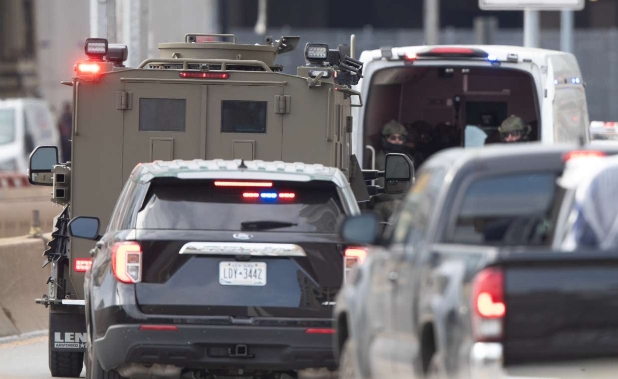 图为装甲押解车辆当天下午离开法院。(图片来源:中新社)