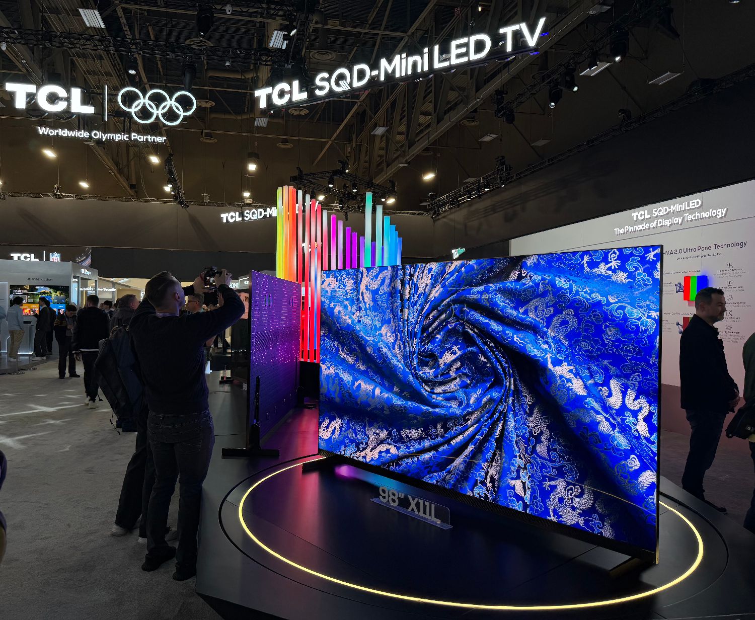 当地时间1月6日,2026年美国消费电子展(CES)在内华达州拉斯维加斯开幕,众多中国企业携前沿技术新品亮相。图为TCL展台。(图片来源:中新社)