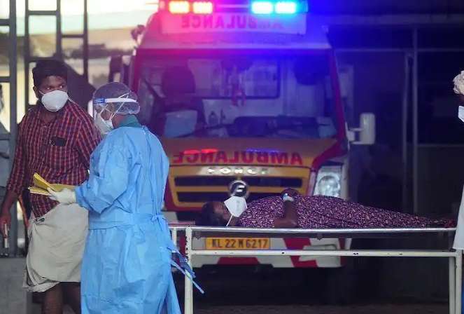 2023年9月,喀拉拉邦一家医院内,医护人员将一名出现尼帕病毒感染症状的病人转移到隔离病房。(图片来源:大陆央视)