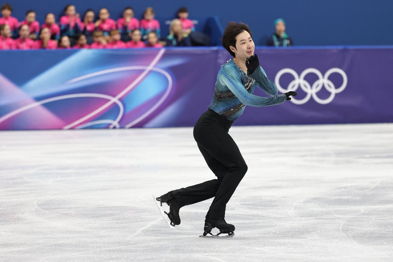 2月10日,在米兰冬奥会花样滑冰男子单人滑短节目比赛中,金博洋获得86.55分,晋级自由滑比赛。(图片来源:中新社)