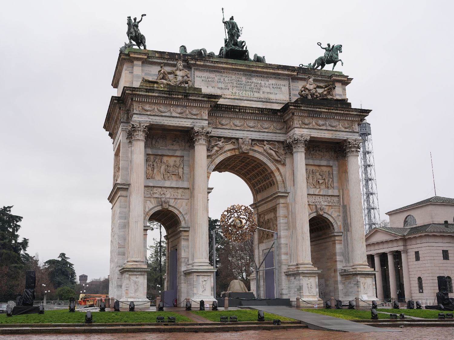 有着两百多年历史的米兰和平拱门,如今成为一处重要的冬奥打卡地,米兰冬奥会主火炬台就安置于这座米兰地标建筑之下。冬奥会期间,这里每晚定时上演光影音乐秀,在作曲家罗伯托·卡恰帕利亚的音乐演奏下,光束从几何绳结造型的圣火装置迸射而出,点亮夜空。