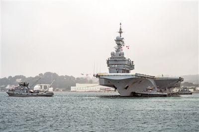 1月27日,参加“猎户座26”演习的法国“戴高乐”号航母从土伦港启航。(图片来源:北京《中国国防报》)