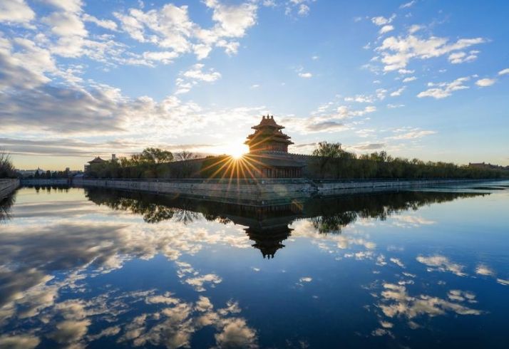 2024年11月29日清晨在北京故宫西北角楼拍摄的日出。(图片来源:新华社)