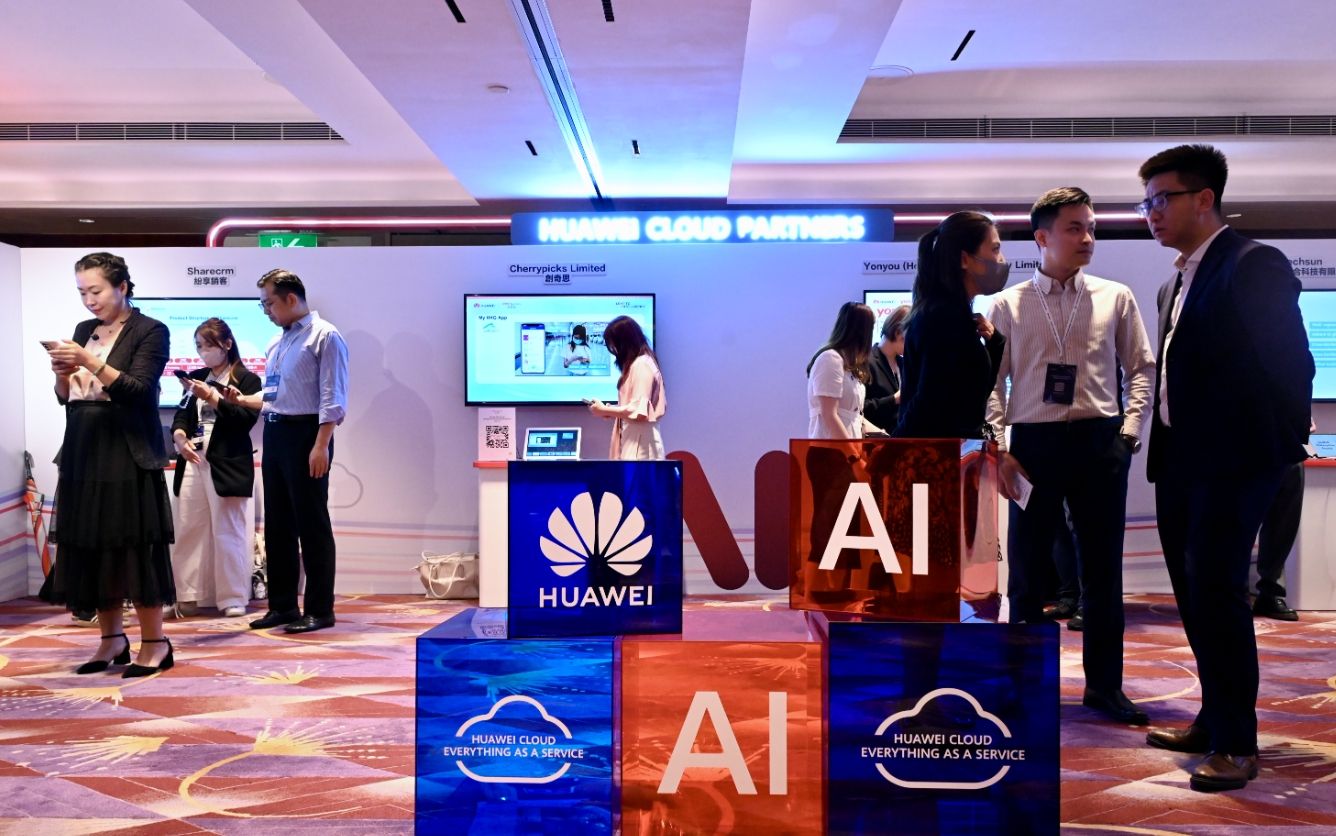 2024年4月23日,2024华为云香港峰会在香港举行,峰会上华为发布一系列创新云服务产品,分享行业智慧化的最佳应用实践,与各企业领袖、行业翘楚及专业人士,共商AI技术的应用落地及产业发展,携手开启数智化新纪元。图为峰会现场进行商贸咨询。(图片来源:中新社)