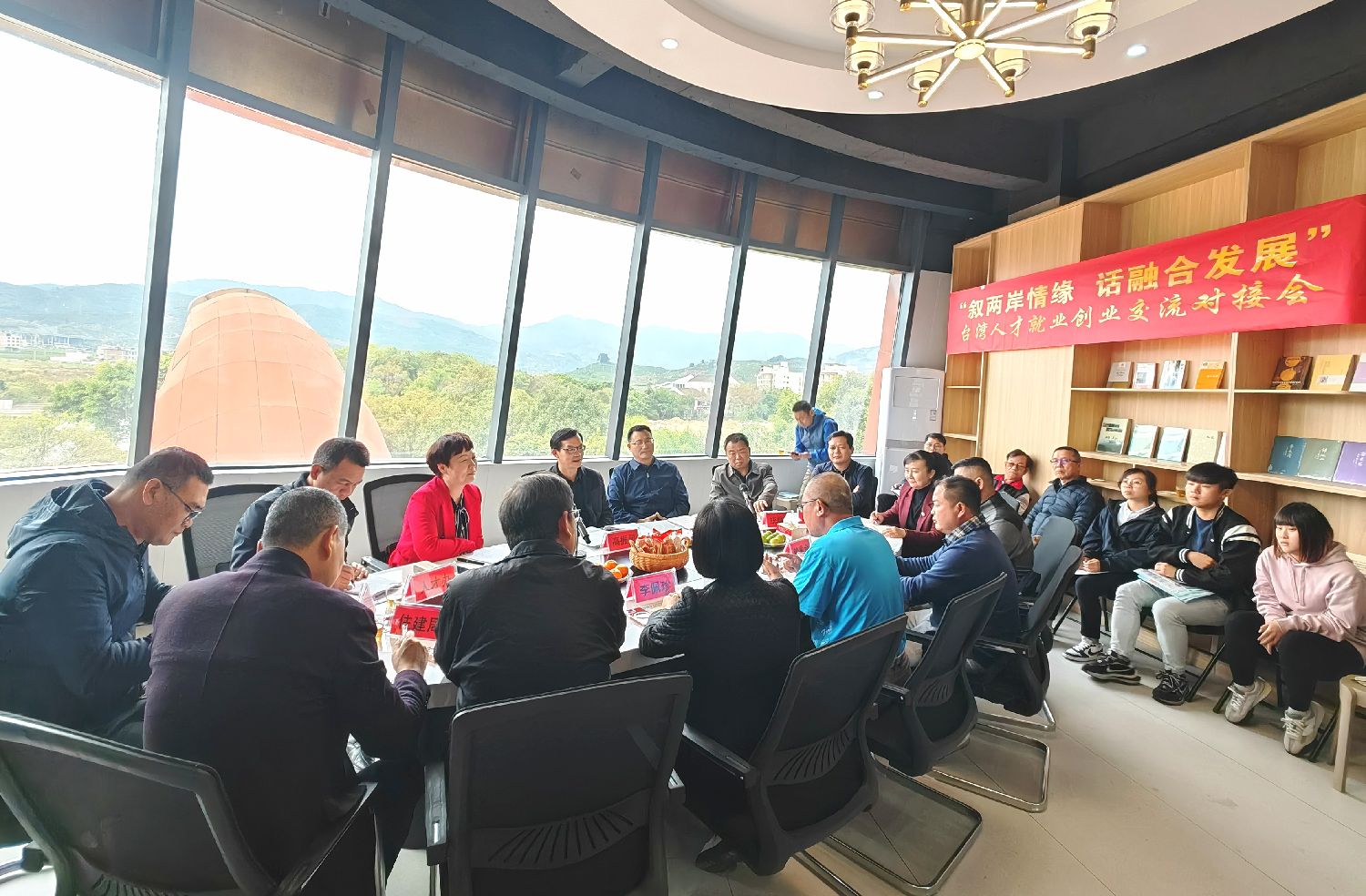 3月7日至10日,台湾彰化县赖氏宗亲会一行20多人赴祖籍地福建平和寻根谒祖,图为一行人参加台湾人才就业创业交流对接会。(图片来源:漳州市平和县委台办供图)
