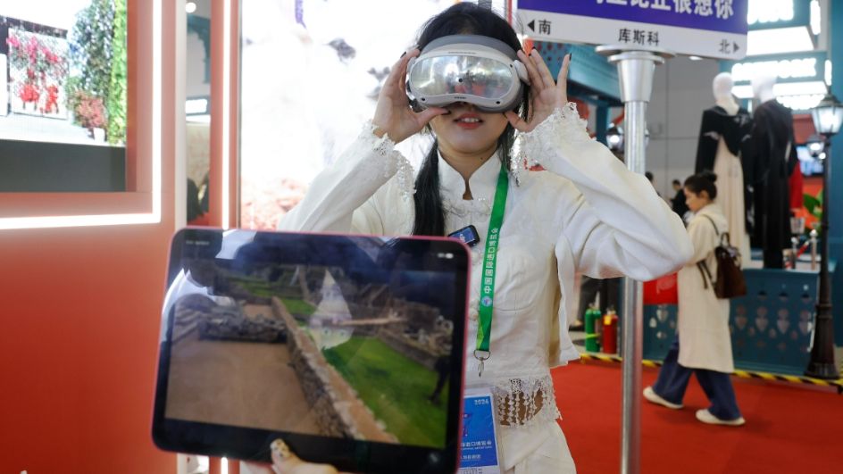 去年11月6日,第七届中国国际进口博览会上,观众在体验AR眼镜。(图片来源:中新社)