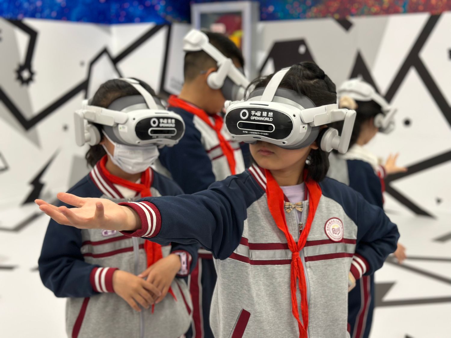 4月23日,甘肃兰州,西北书城“书界奇境LBE沉浸式空间剧场”,吸引多名小学生体验。(图片来源:中新社)
