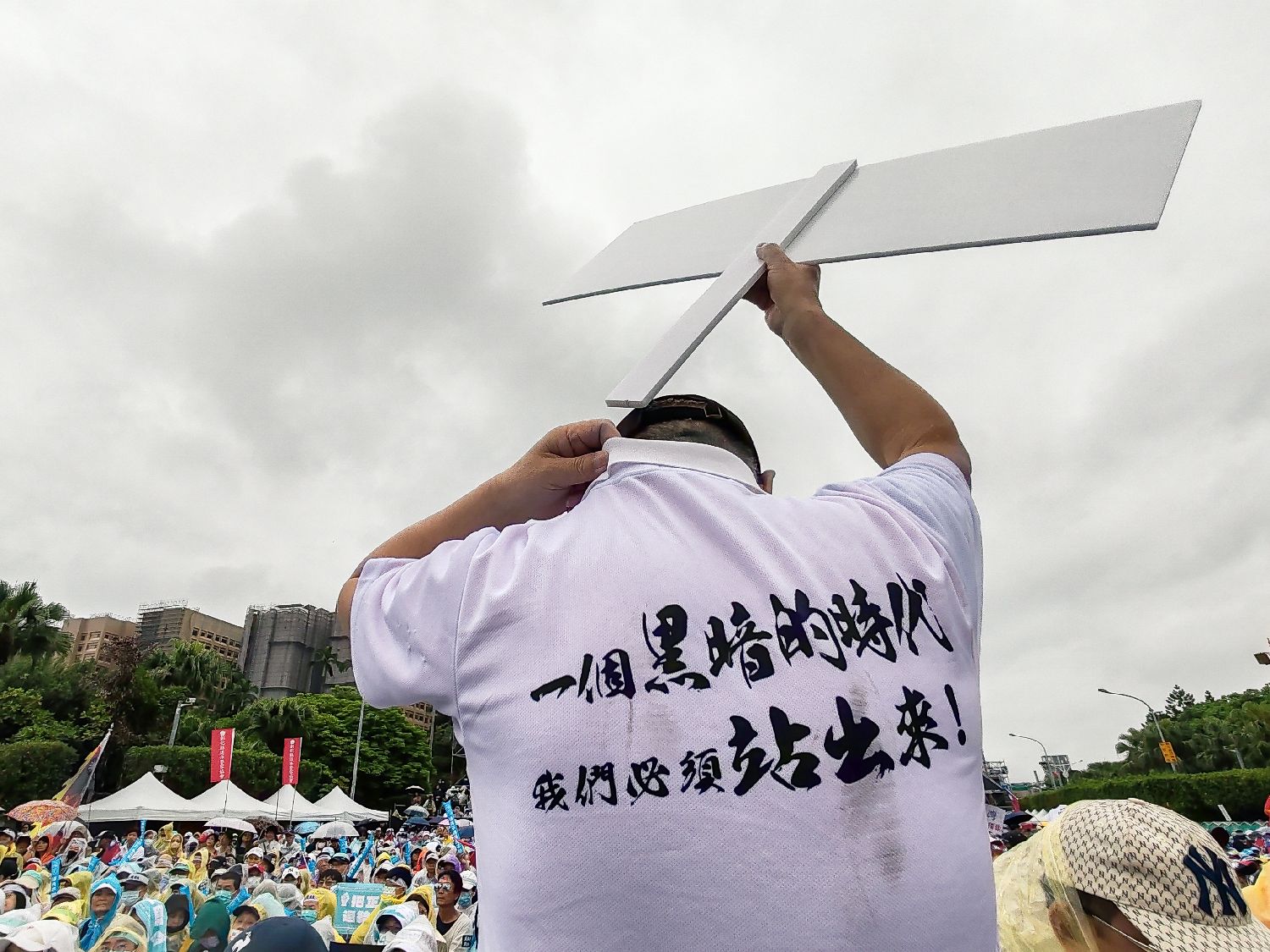“九成概率会下雨”的天气预报并未阻挡人们走上台北街头,发出呐喊。