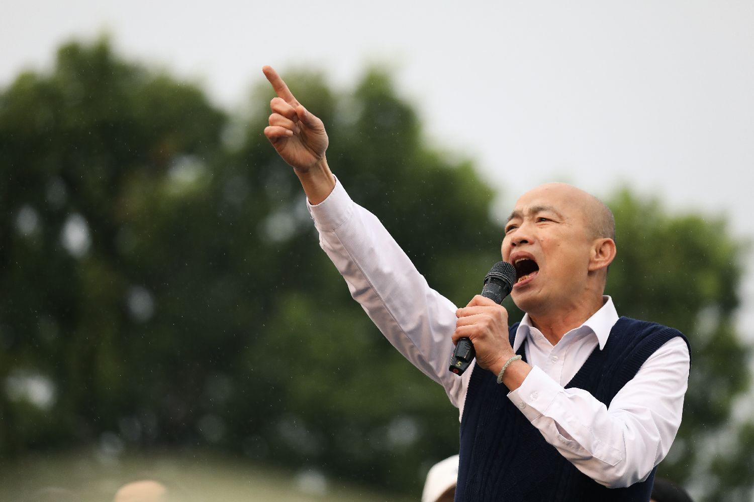 4月26日,台立法院长韩国瑜在活动现场讲话。 (图片来源:中新社)