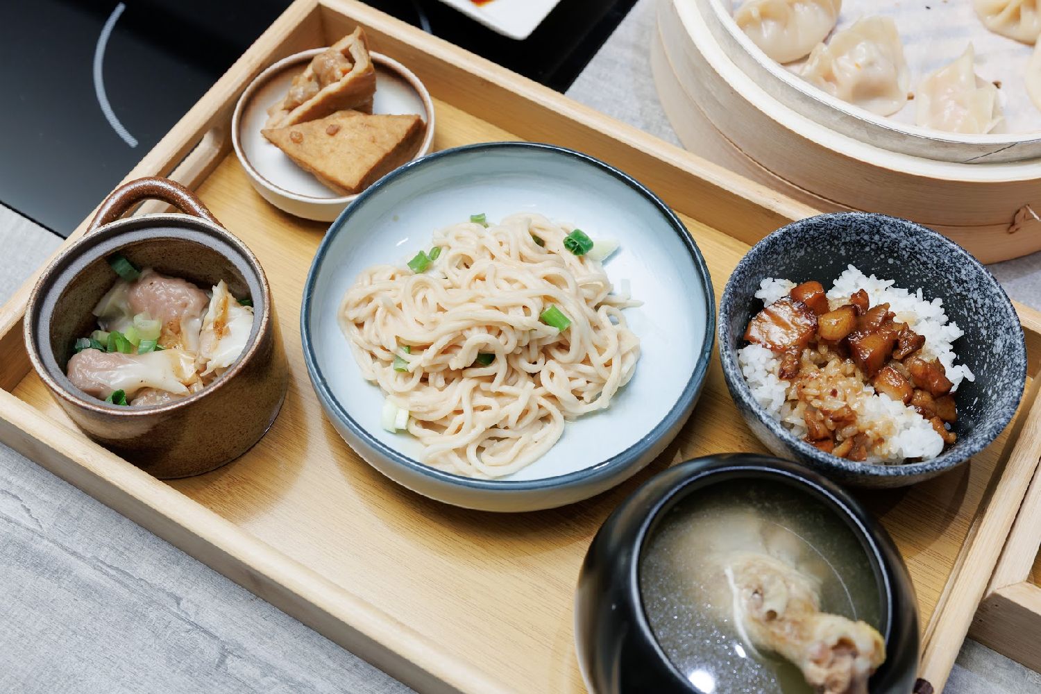 5月13日,一家沙县小吃旗舰店在桃园开业,除经典的拌面、扁肉、蒸饺外,还结合台湾饮食习惯,加入卤肉饭等本地特色美食,并配有咸甜适中的调味料等。(图片来源:中新社/台湾创鑫生机集团供图)