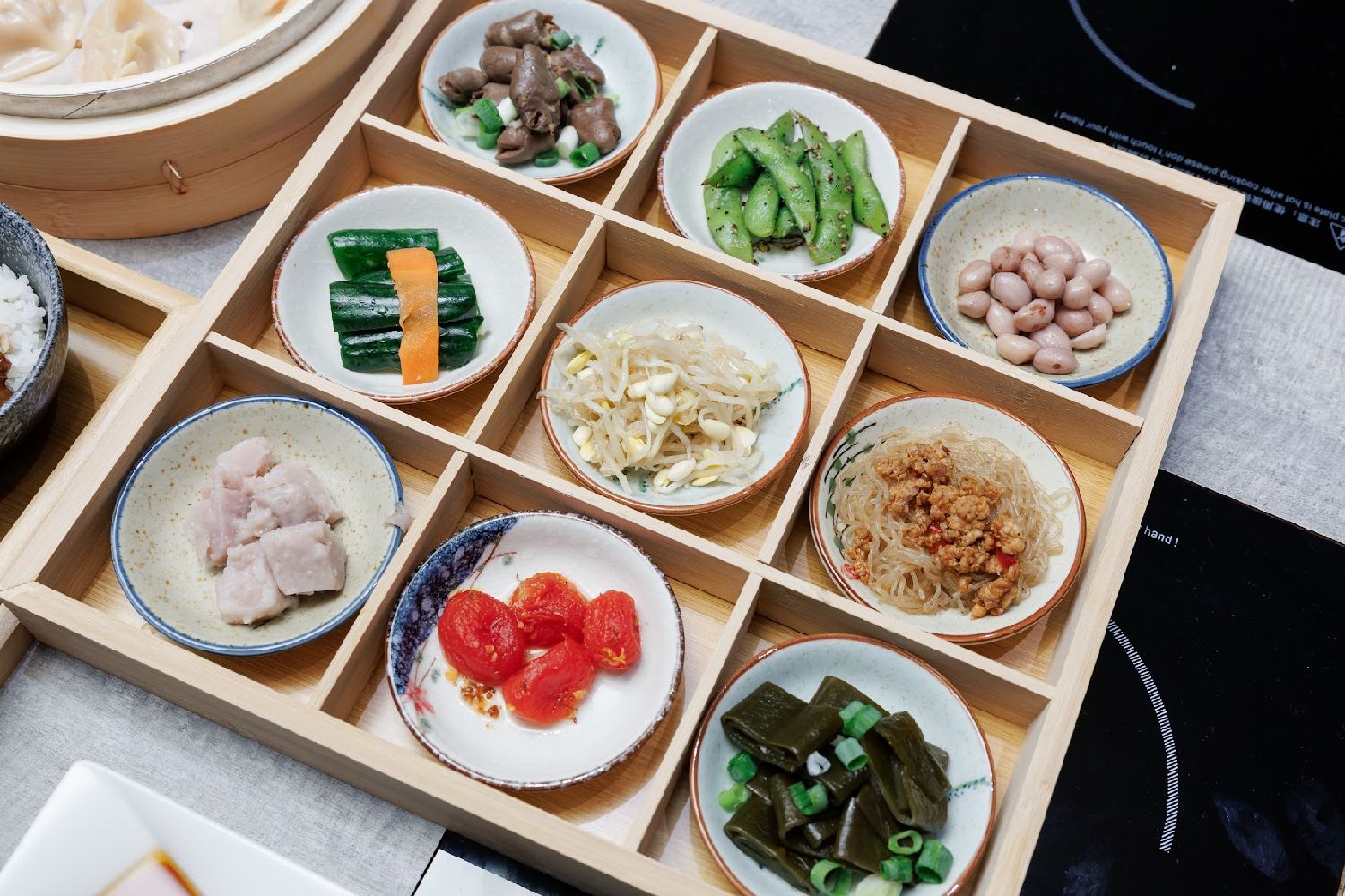 5月13日,台湾一家沙县小吃旗舰店在桃园开业,图为店内提供的配菜。(图片来源:中新社/台湾创鑫生机集团供图)