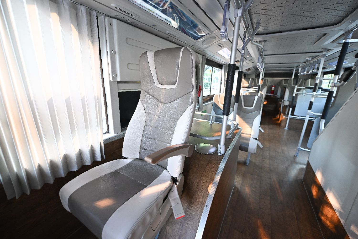 14日拍摄的内部配备着豪华座椅的520路公交车。