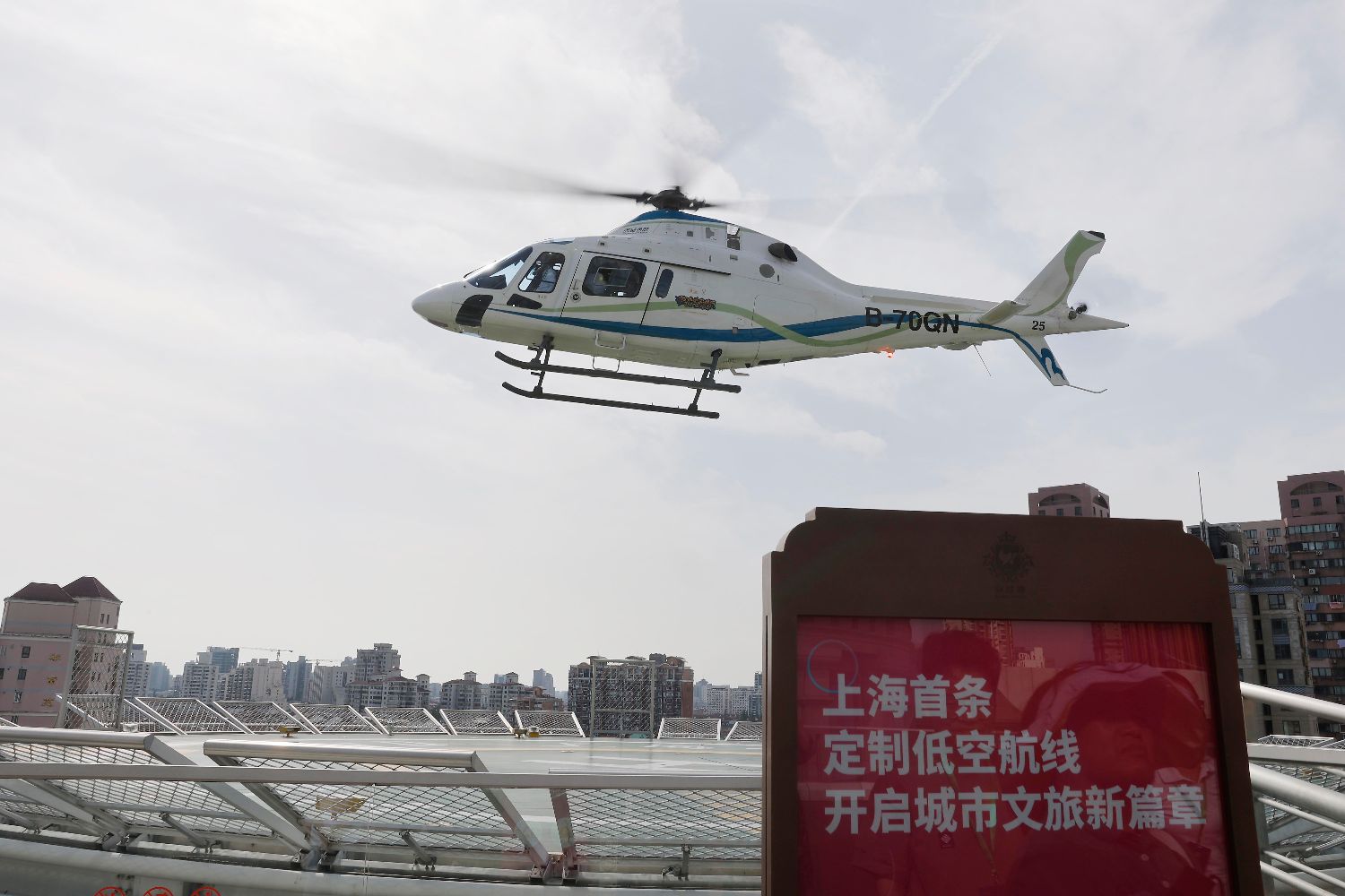 上海中心城区首条定制化低空观光航线19日从环球港起飞,途经上海体育馆—卢浦大桥—南浦大桥—陆家嘴—杨浦大桥(浦东一侧)等上海标志性景点后原途返回,全程飞行约15分钟,这标志着上海中心城区首条定制化低空观光航线正式开通。这是上海环球港推出的上海首条定制低空航线,通过空中视角重构城市观光体验,为市民游客提供多元化的低空文旅选择。