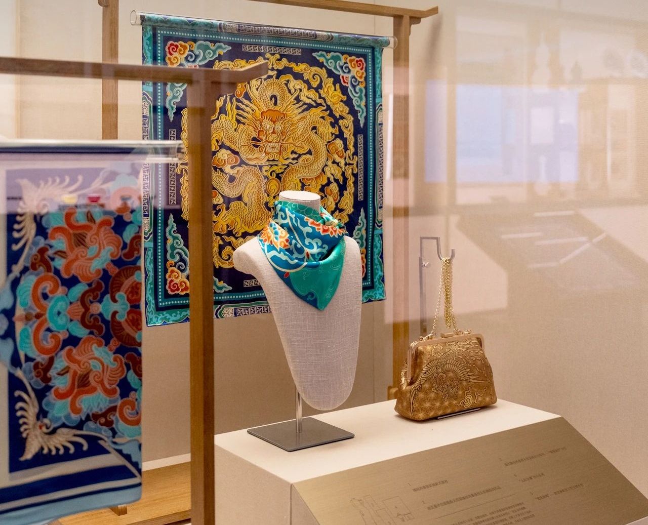 值得一提的是,作为展中展的“中国官式彩画图案艺术设计创意人才培训”成果展,将现代审美融入彩画,打造官式建筑彩画图案艺术的年轻态,手环、丝巾、摆件等文创产品令人耳目一新。