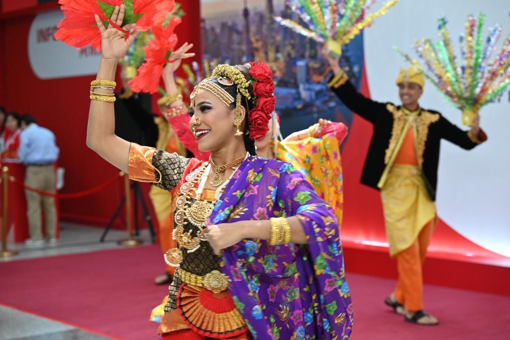 马来西亚参展人员27日在展会现场为观众带来传统舞蹈表演。(图片来源:新华社)