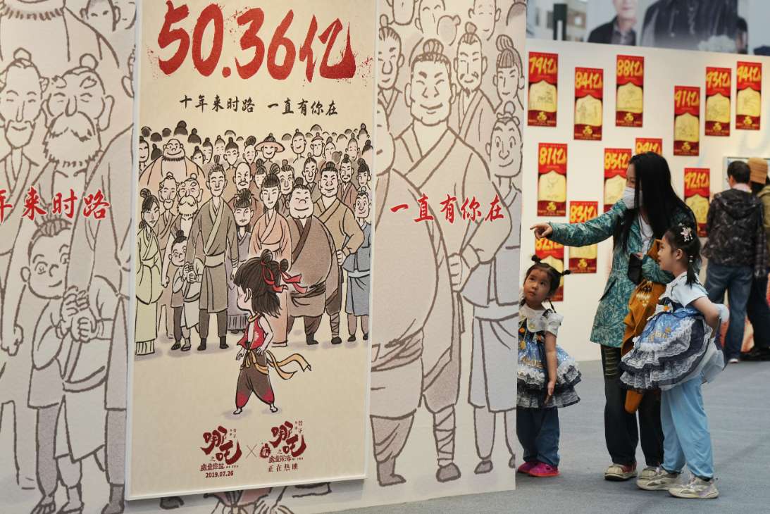 4月18日,电影《哪吒之魔童闹海》破亿手绘海报亮相北京国际电影节。(图片来源:中新社)