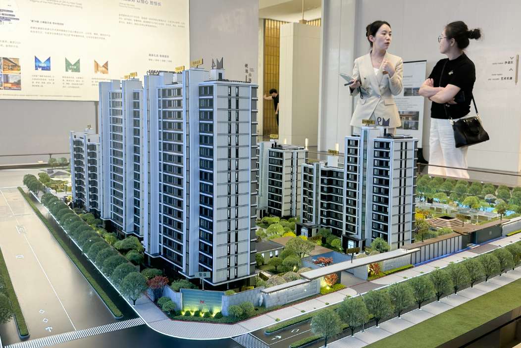 6月1日,购房者在北京一售楼处了解楼盘信息。(图片来源:中新社)