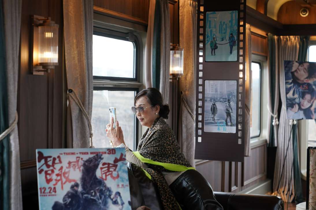4月19日,“跟着电影游中国”电影主题旅游专列“伊春号”从哈尔滨正式发车,游客乘坐专列感受中国电影精彩旅程。(图片来源:中新社)