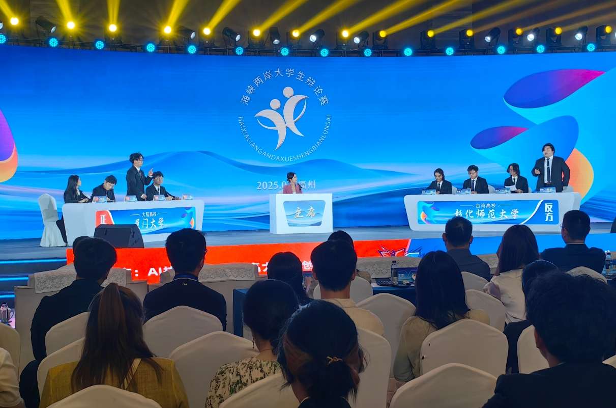本届赛事中,复旦大学、北京师范大学和台湾中兴大学、台湾东华大学等两岸名校近80位辩手同台竞逐,切磋技艺。辩题紧扣热点,两岸青年学子围绕AI技术、青年成长、文化传承创新等议题,以正反立场展开深度思辨与观点交锋。