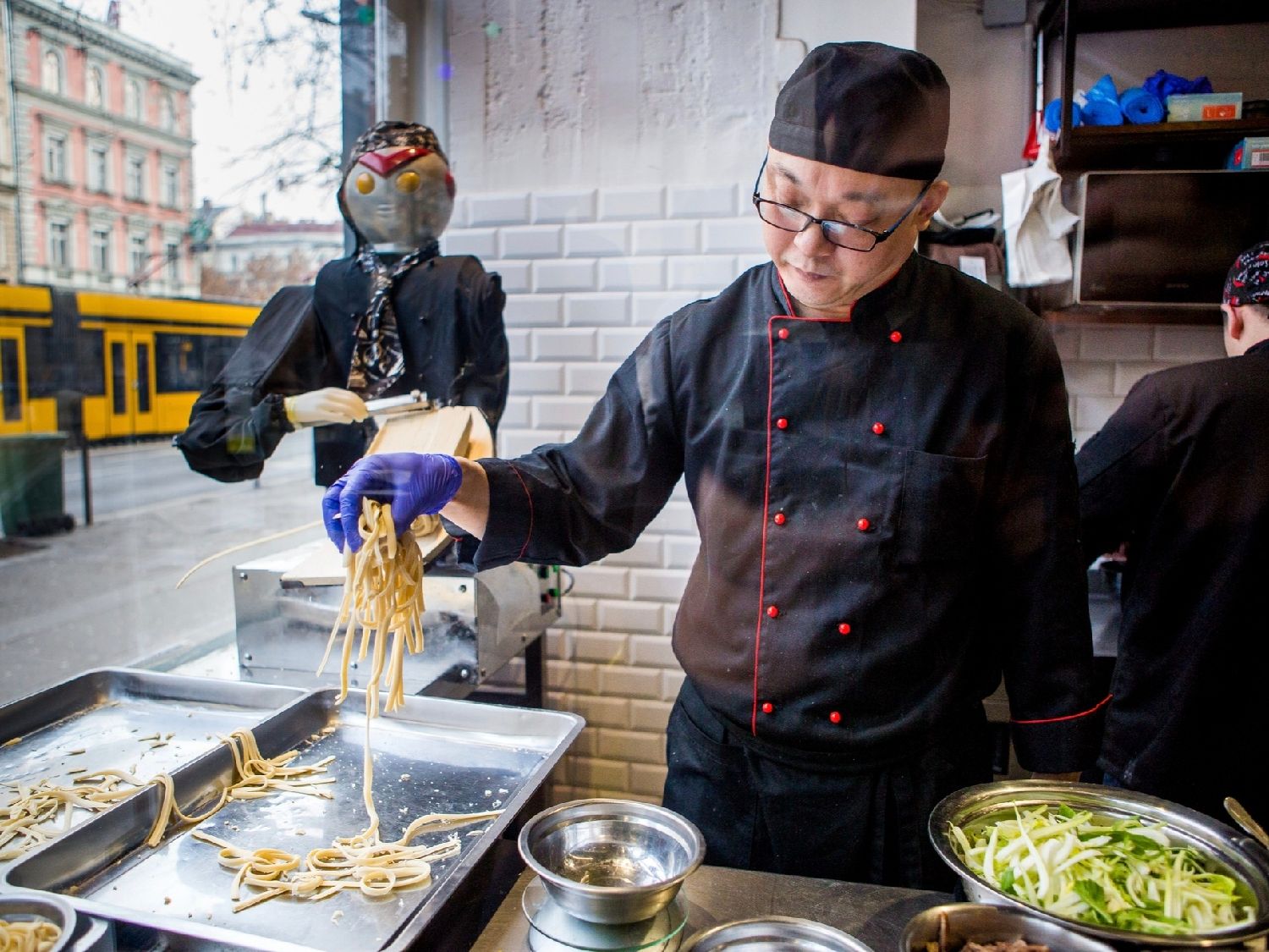 在经营兰州饭店时,王强就发现当地人爱吃面食,尤其是面条。于是2017年他在布达佩斯中央大市场附近开了一家名为“biangbiang面”的面馆,目前已有3家分店,饭点时需要排队等位。