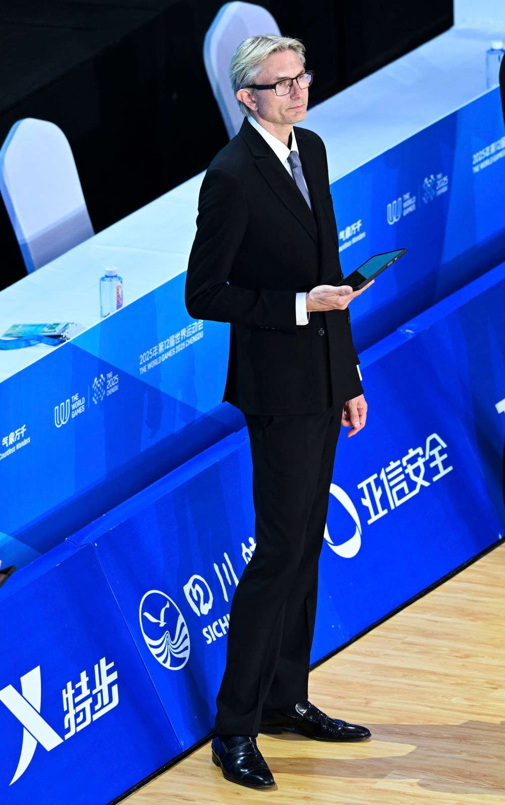 1970年出生的辛金斯来自拉脱维亚,7岁开始跳舞,先是职业舞者,后来退役转做教练与裁判。2024年无锡的亚洲体育舞蹈节,他第一次到中国执裁。成都世运会,是他的第二次中国之旅。
