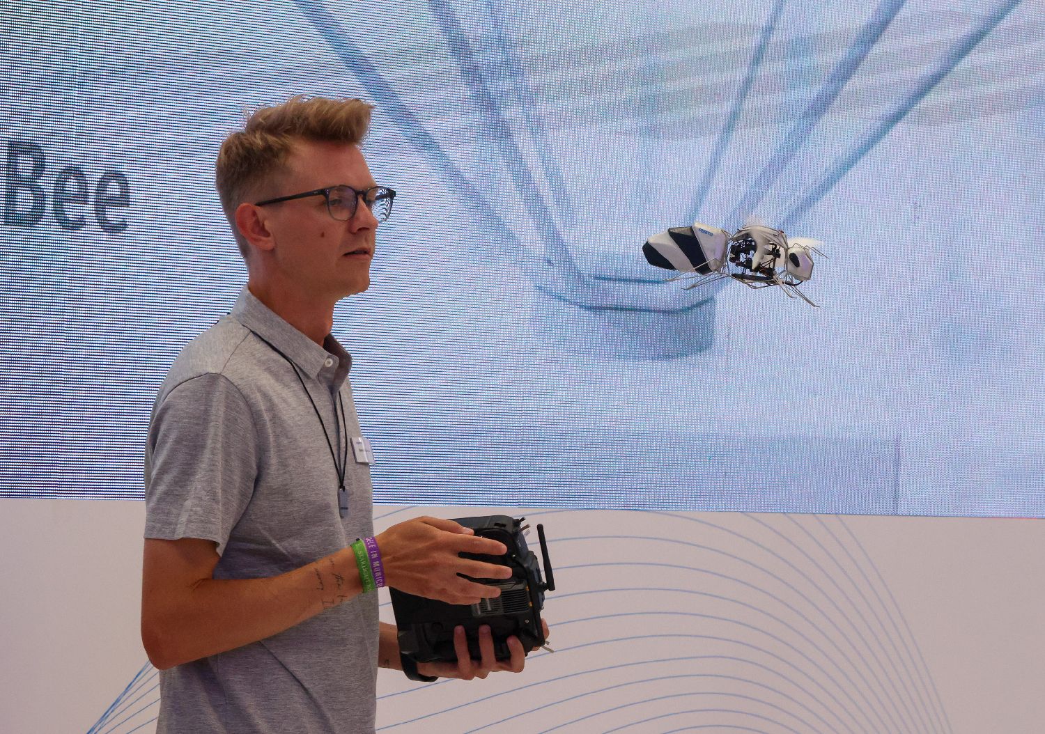 8月11日,在北京举办的2025世界机器人大会上,来自德国的费斯托公司携仿生飞行家族最新成员——仿生蜜蜂进行现场飞行演示。(图片来源:中新社)