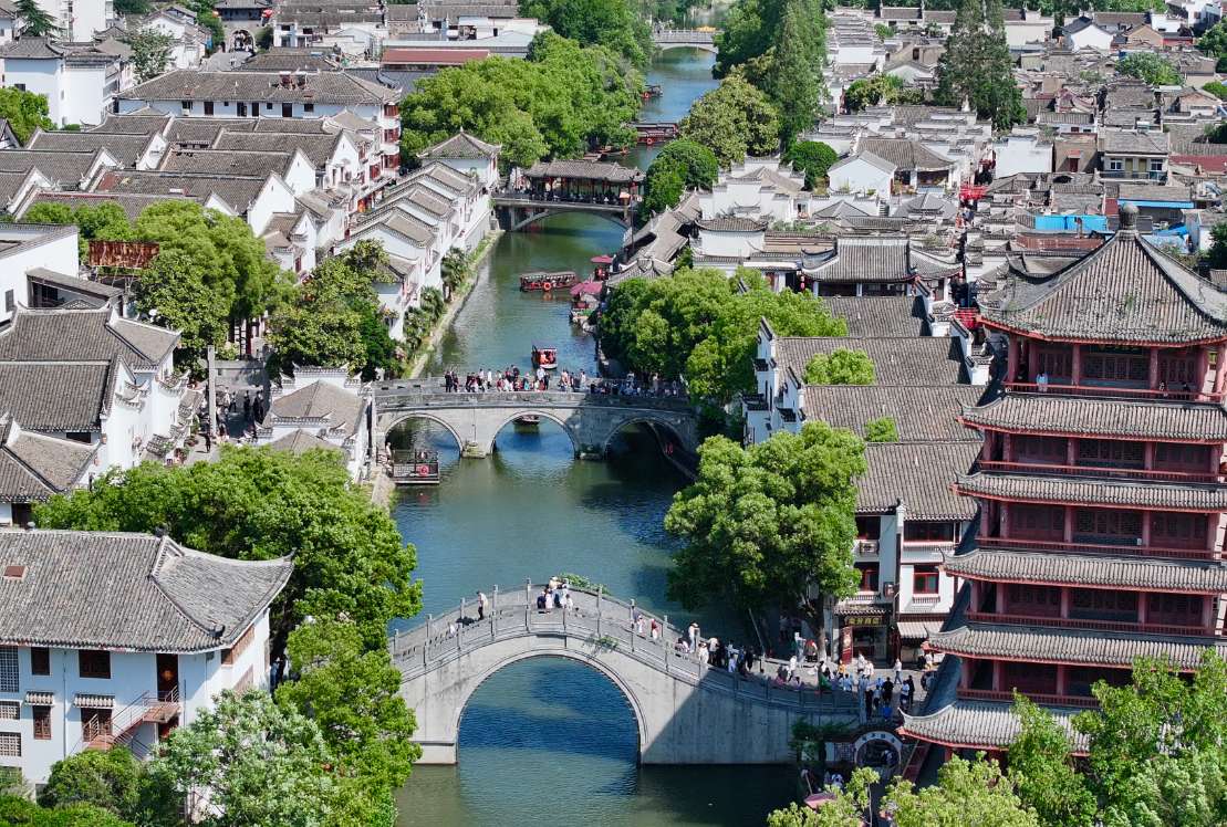 今年“五一”假期,安徽省合肥市肥西县三河古镇景区古意盎然,吸引众多游客前去参观游览。图为江淮民居和穿城而过的小河互相映衬,美景如画。(图片来源:中新社)