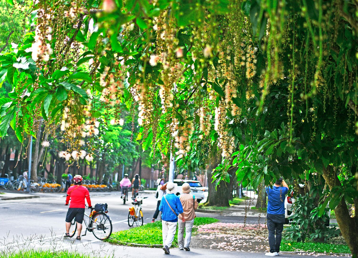 台湾大学校园内的穗花棋盘脚开花。(图片来源:香港中通社)