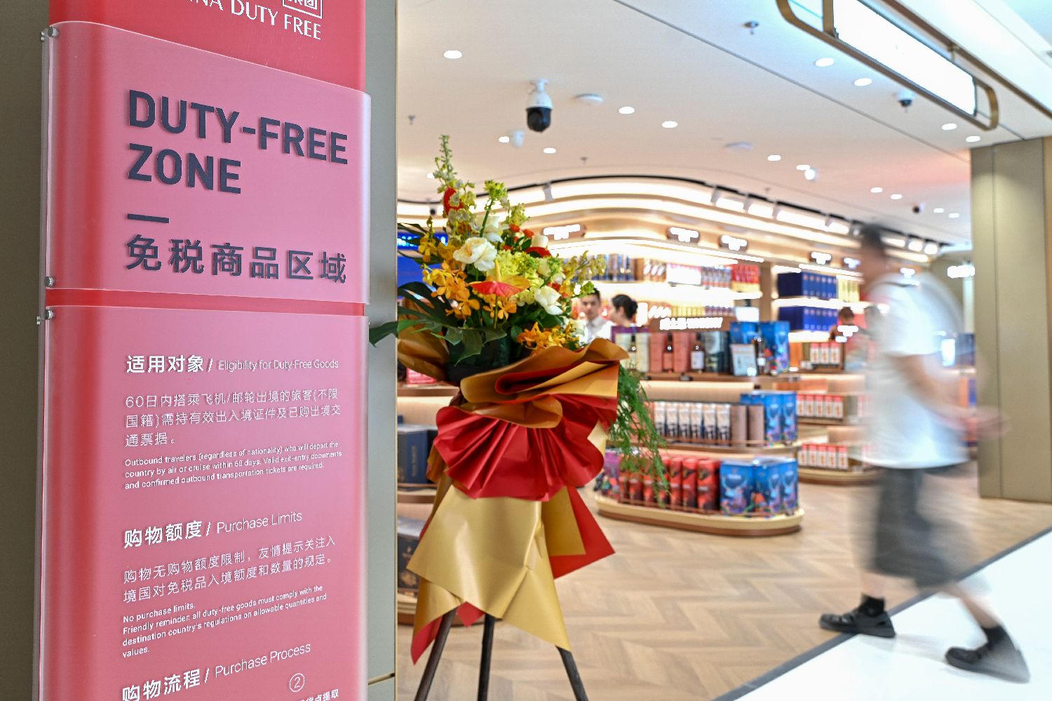 该店引入“免税+有税”“进口+国产”“线下+线上”购物模式,商品涵盖美妆护肤、腕表首饰、箱包服饰等品类,并以中国国潮精品与科技电子为亮点。同时,店内设有离境退税服务。