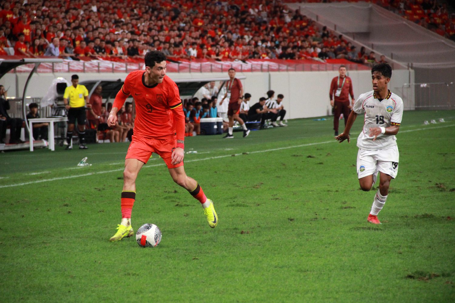 下半场刚开场不久,东帝汶队球员弗雷塔斯小角度破门扳回一球,令比赛悬念再起。中国队主帅安东尼奥随后调兵遣将,陆续将王钰栋、胡荷韬、杨皓宇、向余望换下,但中国队在场面上未有起色,2:1的比分保持到了终场。