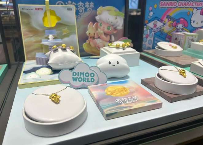 周生生联名泡泡玛特IP Dimoo,推出的黄金饰品。(图片来源:《北京日报》客户端)