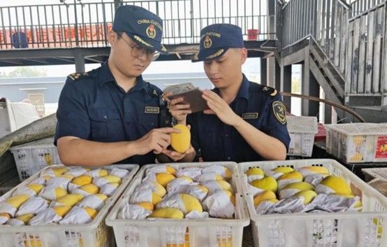 享受“绿色通道”的还有圣德龙芒果,它被誉为缅甸特有的“芒果之王”,以甜度高、纤维少、皮薄肉厚核小而闻名,一直以来在中国畅销。芒果属于易腐易损鲜活农产品,对通关时效要求极高。